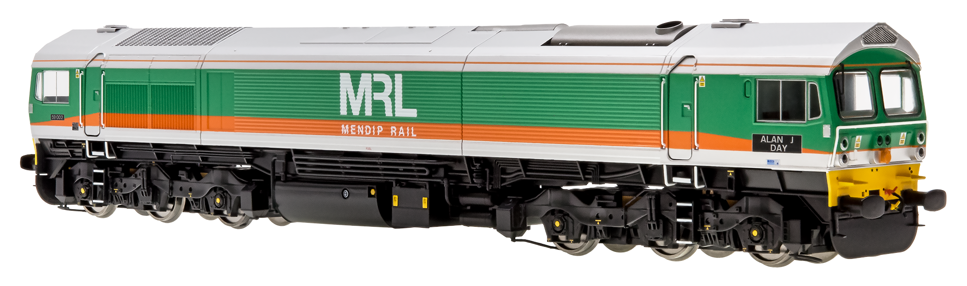 4D=005-007 Published 08/01/2026 at 1927 × 570 in Dapol 4D-005-007 Dcc Ready Class 59/0 59002 ‘Alan J Day’ in Mendip Rail grey, green & orange (OO Gauge) Free Postage ← Previous
