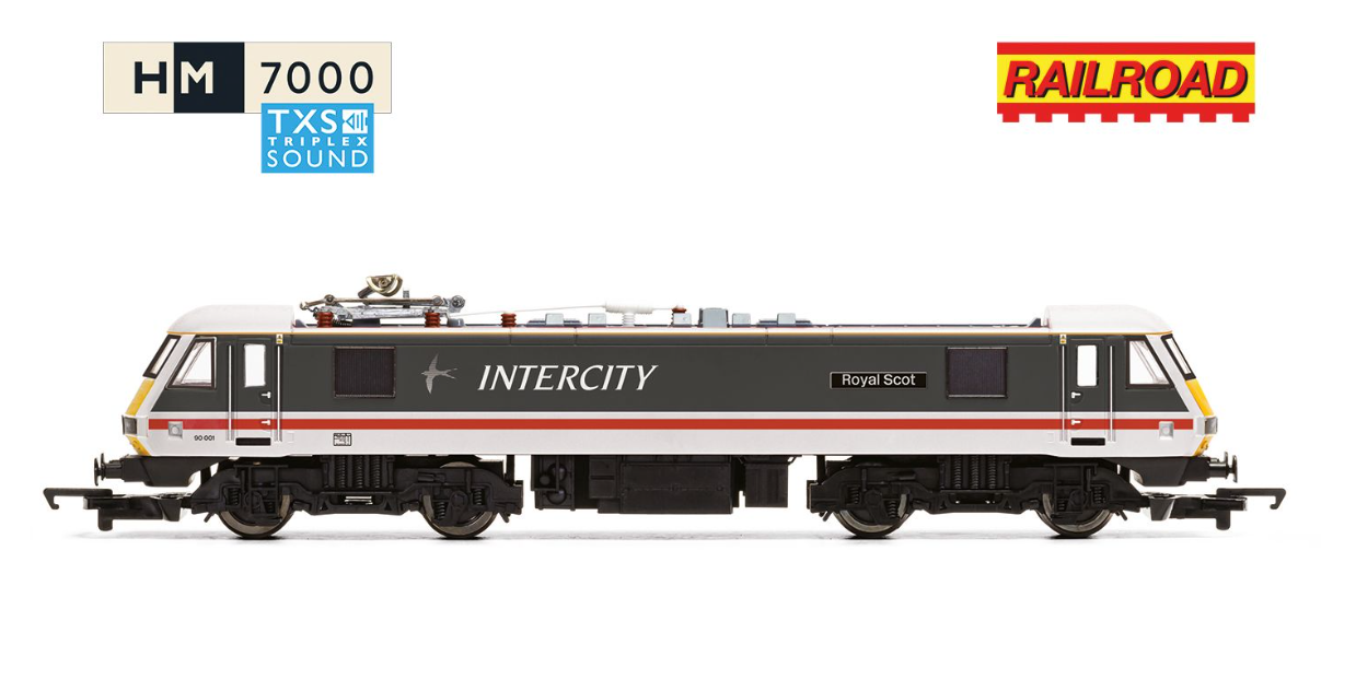 Hornby R30529TXS RailRoad: BR - Intercity Class 90 - 'Royal Scot' 90001 Dcc Sound (OO Gauge) Free Postage