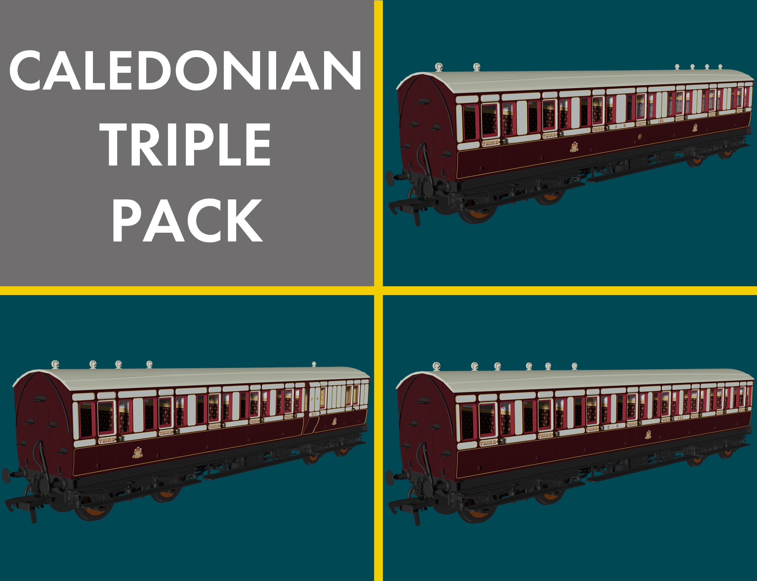 Rapido Trains 978107 Caledonian ‘Evolution’ Non-Corridor Carriage Pack (OO Gauge)